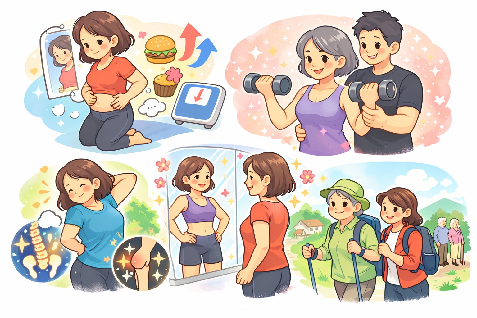 実はこれらの不調や体型変化は、年齢による筋力低下・姿勢の崩れが大きく関係しています。
